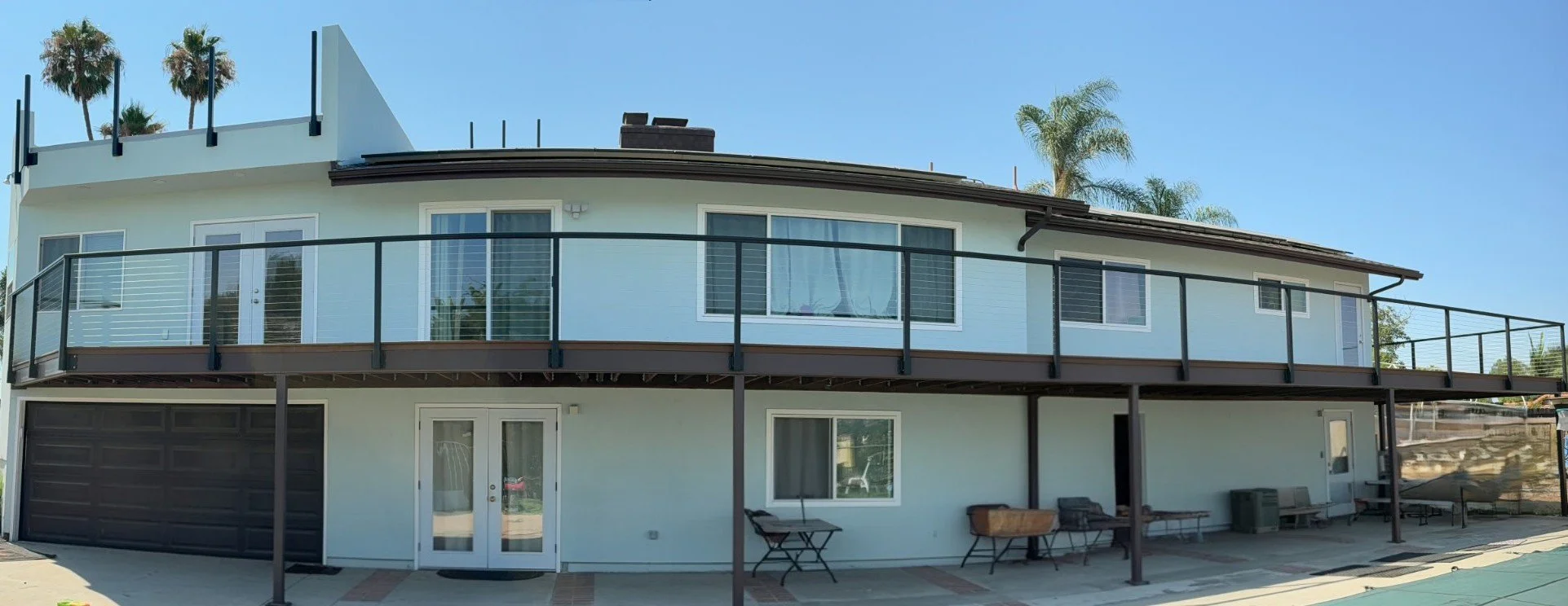 Our Orange County projects often incorporate modern railing systems and integrated shade structures.