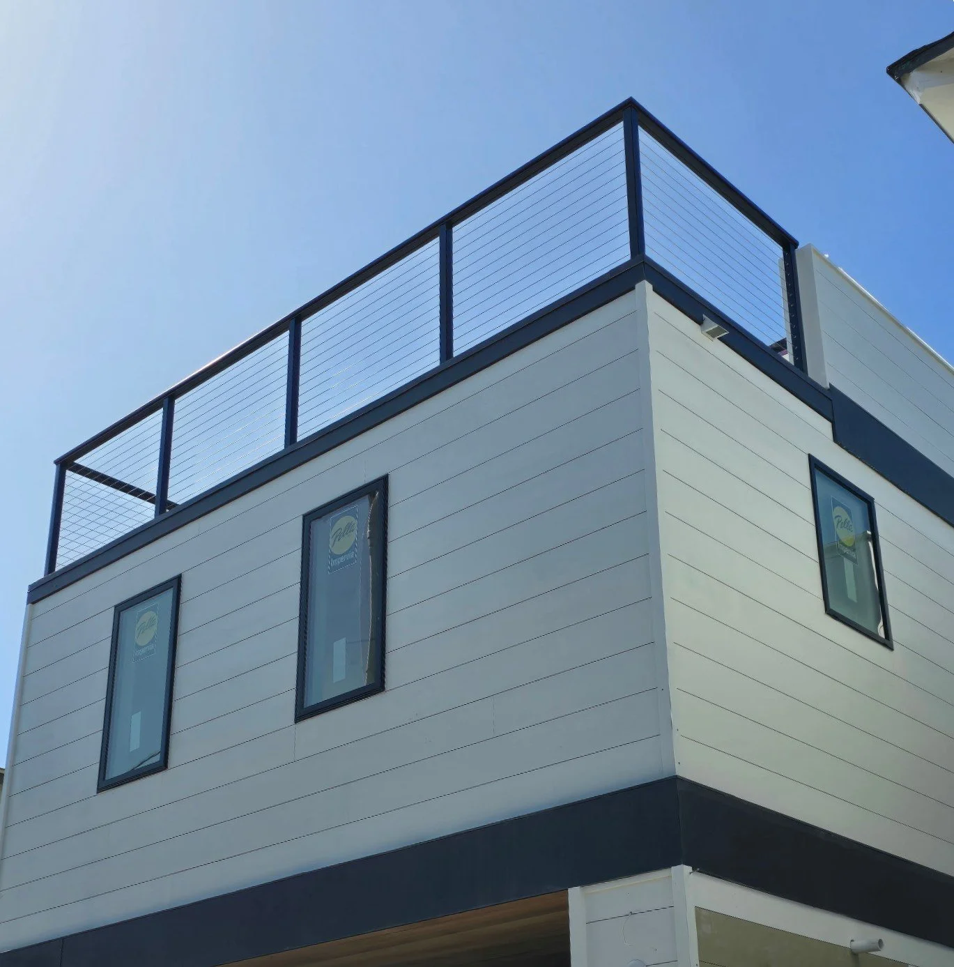 This rooftop deck project in Newport Beach, California features a modern cable railing system designed to preserve open coastal views while maintaining safety and durability. Picano Builders installed a powder-coated aluminum frame with stainless steel cable infill, creating a clean architectural look that complements the contemporary beach home. The elevated rooftop design allows homeowners to enjoy panoramic neighborhood and ocean breezes while maximizing usable outdoor living space.